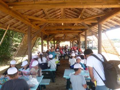 入所式も終わり,今は楽しくお昼ごはんを食べています。