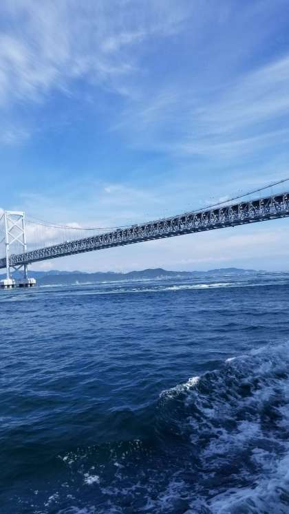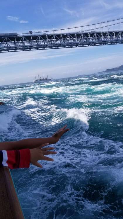 午後からは,観光汽船に乗って,鳴門のうずしおを見ました。大きなうずしおにみんな大きな歓声をあげていました。