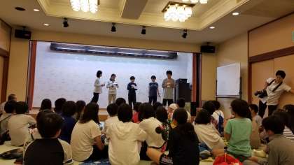 レクリエーションでは,自分たちで企画したゲームを楽しく行いました。その後,1日目の過ごし方がどうだったかを反省会でふり返りを行いました。