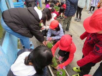 中間休みに,1年生が「花いっぱい運動」を行いました。きれいな花が咲き続けるように,これから毎日,水やりを頑張っていきます。
