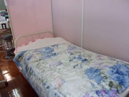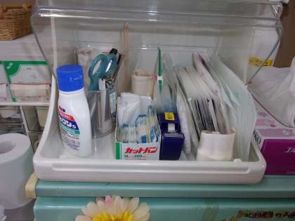 けがの てあてを する どうぐや,べっどが あります。しんどいときは べっどで ねて やすむ ことも できます。