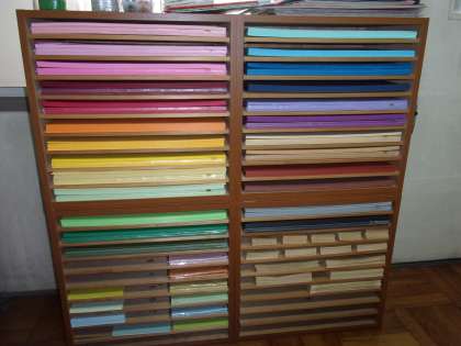 たとえば,ずがこうさくで えを かくときに つかう がようし です。いろんな いろの がようしが ありますよ。