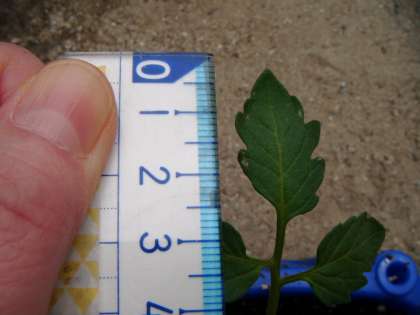 下の しゃしんで,学校の トマトのなえを かんさつしてみてください。