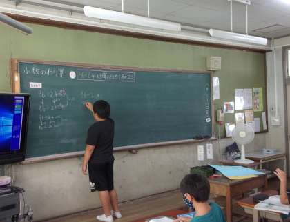 算数の学習では,小数のわり算の仕方を考えました。今まで学習したことを生かして,計算することができました。