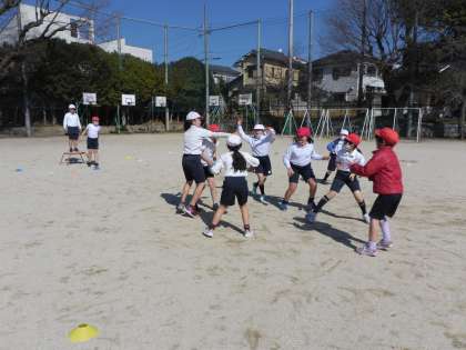 3年生では,体育科「ポートボール」が始まりました。高学年「バスケットボール」につながる学習です。また,学年最後のボール運動になります。「ハンドベースボール」「エンドボール」「サッカー」などの学習を生かして,より良い学習にしていけたらと思います。