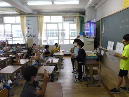 2年生では,学級活動1「クラスをよりよくするために〜係活動〜」をがんばっています。今週から本格的に活動し始めました!毎朝,各係がお知らせをして,クラスがよくなるためにがんばっています!