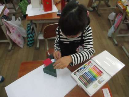 子どもたちは,四角・三角・丸などの形を上手に写し取っていました。