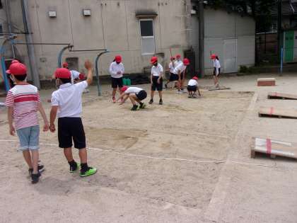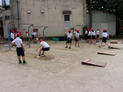 ただいま,体育科では「走りはば跳び」を学習しています。