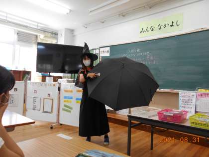 お話を聞いて,自分のお気に入りの場面を選びました。そして,想像したイメージをアイディアスケッチしました。お話は,「ふしぎなコウモリガサ」。サキちゃんは,コウモリの形の穴が開いたこうもり傘にうずくまって泣いているノダちゃんに出会います。ノダちゃんは,まるで吸血鬼のような恰好をしている小さな女の子。ノダちゃんの傘の穴をふさごうと色々な人に出会っていきます。