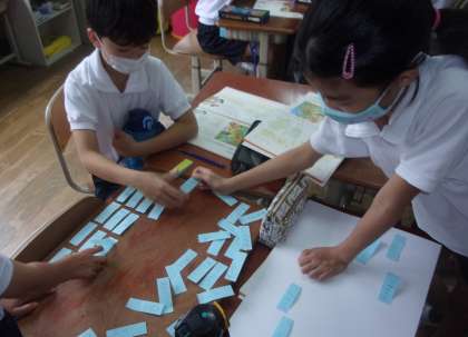 国語の学習で,対話の練習をしています。「山小屋で三日間すごすなら」をテーマにグループで持っていくものを話し合っています。決まりとして,「食料・水」「着替え」のほかに持っていけるのは,5つだけ!子どもたちは,「バーベキューしたい!」「花火もしたい!」「川遊びもしたい!」とやりたいことだらけ…。