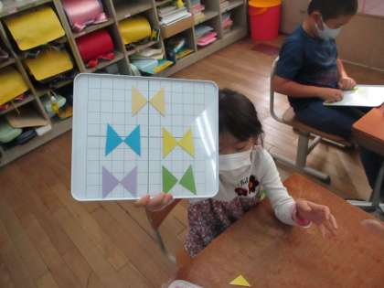 今日は,三角形の色板を使っていろいろな形づくりをしました。