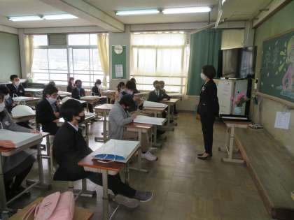 それぞれの教室で一人ずつ卒業証書を受け取り,卒業記念ムービーを見ました。そして,担任の話を聞き,最後の教室での時間を過ごしました。