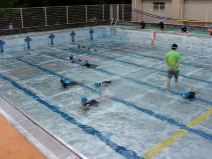 今週は低い水位で,学習の流れを確認したり,水慣れを十分にしたりします。