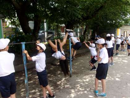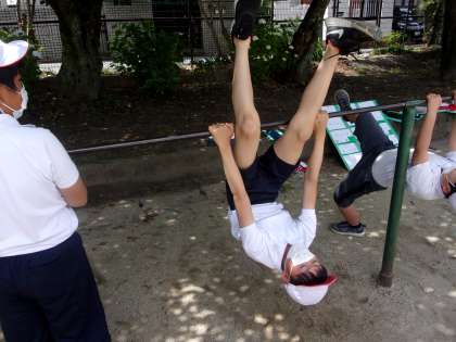 久しぶりに鉄棒を触る子ども達が多く,「できるかな?」という声が聞かれましたが,体育の時間になると自分ができる技をたくさん練習していました。身体も成長し,高い鉄棒で技ができることに喜びを感じている様子でした。次は,新しい技にも挑戦してほしいです。