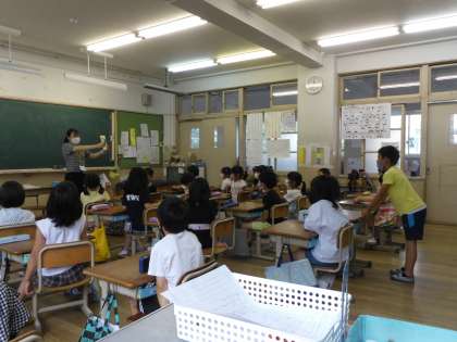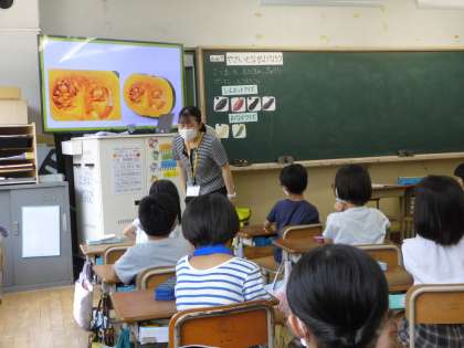 2年生では,学級活動2で栄養教諭とともに「やさいとなかよくなろう」の学習を行いました。まずは,今育てている野菜を中心に,シルエットクイズやスリーヒントクイズなどを行いました!