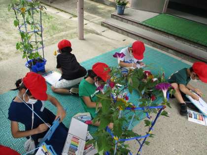 1年生のあさがおはとても綺麗に咲いています。