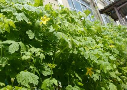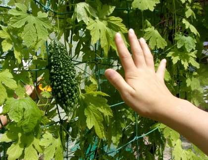 今日は、ツルレイシの観察をしました!花壇に行ってみると、夏休みの間にすくすく成長していました!!