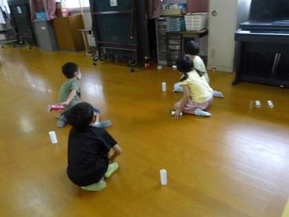 2年生では,生活科「あそんで ためして くふうして」を続けています。今回は,ころがす・はじくあそびを考えました。「ころがりやすいもの」を集め,ボーリングやホッケーなどにして楽しみました。来週からは,いろいろな方法を考えて,「自分たちでつくったかんたんな遊び」をつくる予定です。