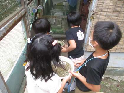 生き物がえさを食べてくれると、子ども達はとても嬉しそうにしていました。
