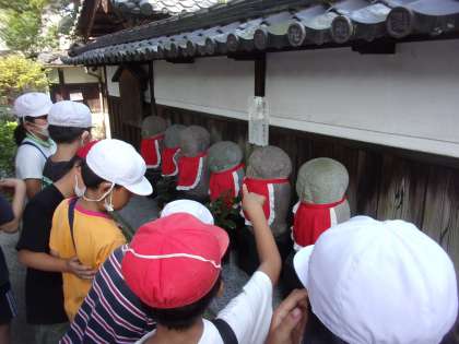 先日のゲストティーチャー浅井先生による音羽のまちのお話に引き続き、昨日は町探検2回目に出かけました。お話にあった場所を中心に、浅井先生の解説付きの音羽ツアーでした。