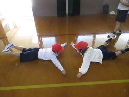 体育「むしに なって」では、体を使って虫になりきって表現する活動をしています。