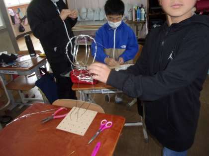 今日は、ワイヤーを使って思い思いに表現をしました。曲がりやすかったり、何度もやり直すことができるワイヤーの良さを生かして、みんな素敵な作品をつくっていました♪