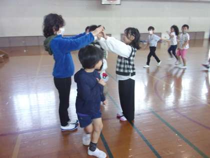 今年の2年生は、音楽で学習したあそびうた『ロンドンばし』の紹介をします。