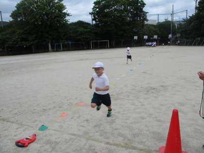 腕の振りを意識しながら、みんな力いっぱい走っていました。