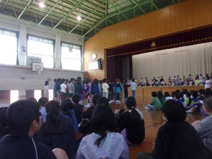 久しぶりの全校児童が集まるのでみんな少し緊張していました。