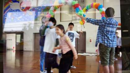 1年生を迎える会がありました。6年生は1年生の手を引いて、優しくエスコートしながら入場しました。出し物はダンスや跳び箱、書道のパフォーマンスなど、さすが6年生という内容で、大きな拍手をもらうことができました。お兄さんお姉さんらしい、素敵な笑顔が輝いていました。