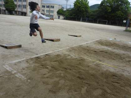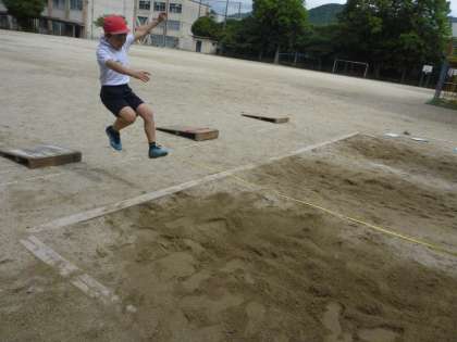 空中姿勢もよくなり。「身長の2倍の距離」もとべる児童も増えました!