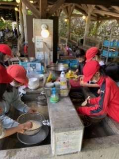 野外炊事ではカレーライスを作りました。グループでそれぞれ役割分担をして、協力して作りました。