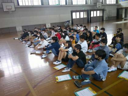 総合的な学習の時間に車いす体験をした時の様子です。普段車いすに乗っておられる方に来ていただき、お話をしてもらいました。子どもたちは一生懸命お話を聞き、車いすの体験をしました。後ろが見えないので押してくれる人との信頼関係が必要なことと少しの段差でも怖く感じることを実感しました。