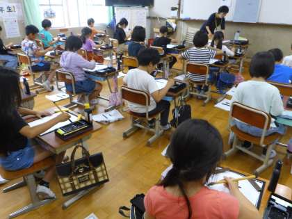 3年生では、書写「毛筆」を続けています。今回は、「横書の書き方」を意識し、「二」を書きました。「難しい」というつぶやきがたくさんある中、頑張って書いていました!