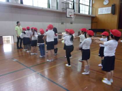 今週は1年生の担当の先生と体育と音楽を学習しました。