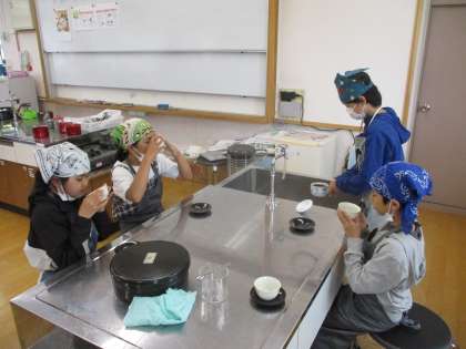 家庭科「私の生活、大発見」では、実際にお茶を淹れて飲みました。