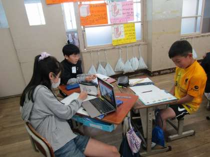 国語の学習では、友達の良い所や意外な一面を引き出すためにインタビューの仕方や質問内容を工夫して聞くという学習をしています。インタビューで知ったことからスリーヒントクイズを作って「わたしはだれでしょうクイズ」をします。インタビューの時間内は、インタビューの内容から質問をつないで聞いていました。クイズ大会が楽しみです。
