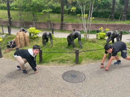 チンパンジーに仲間入り。 上手に歩けてる?