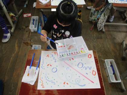 色を混ぜたり水の量を調整したりするのが難しいですが、一生懸命取り組んでいました。