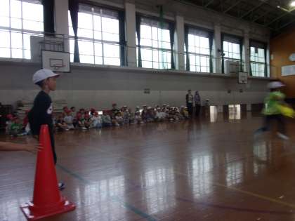 もうじゅうがりで1年生と仲良くなった後は、リレーをしました。