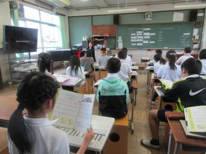 5年生の子達は歌を歌うのが大好きです。歌詞の意味を考えて、強く歌ったり、弱く歌ったりしています。音楽室から聞こえるきれいな歌声がとても素敵です。
