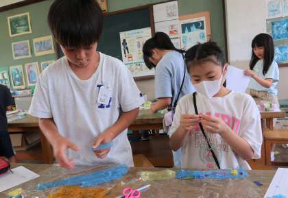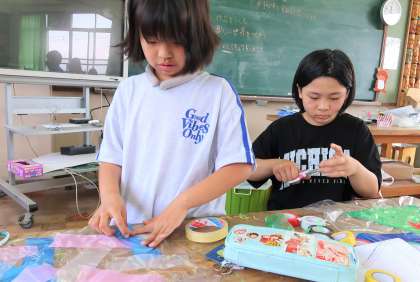 光が通る感じを確かめながら使う材料を工夫していました。
