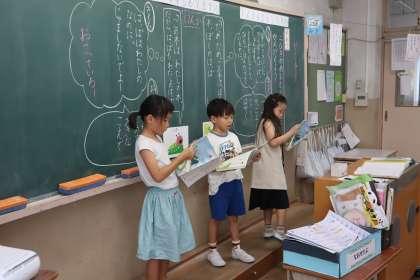2匹のあおむしの気持ちや、どのように音読するかを考えました。