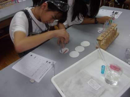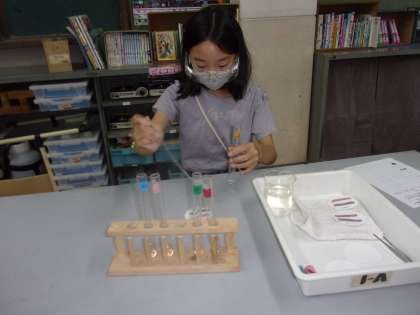初めてリトマス紙の色が変わった時、「変わった!」「すごい!」と、とても喜んでいました。