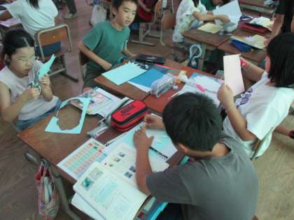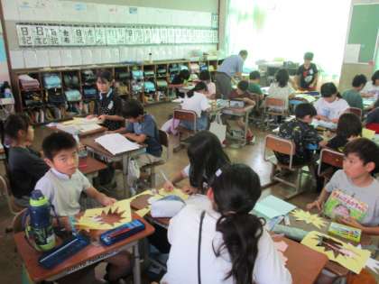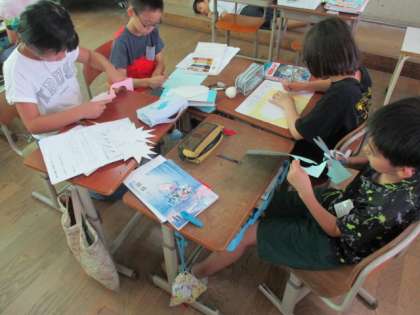 4年生 国語科では,お気に入りの本を紹介する「本は友達」の学習を続けています。今日は「ポップづくり」に取り組みました。