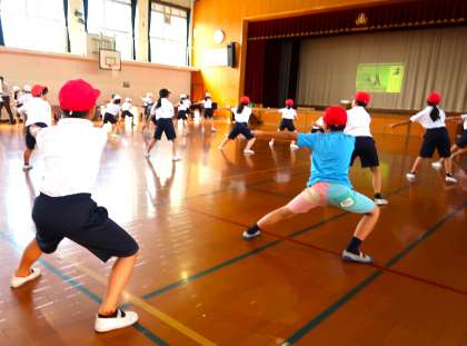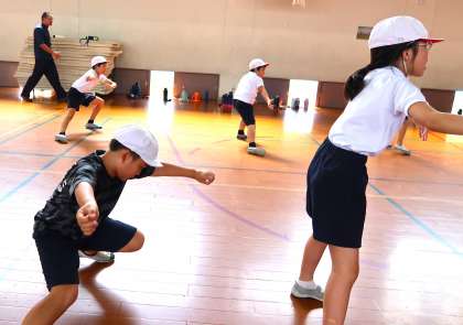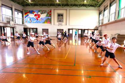 ソーラン節では腰を低くし大きく腕を大きく動かすことを意識しながら練習しています。