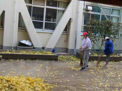 朝休みに渡り廊下を歩いていると、落ち葉を掃除してくれている姿が!管理用務員さんも「一緒にやってくれると助かる」と声を掛けてくれました。自分たちで考えて行動する姿が素晴らしいですね!!