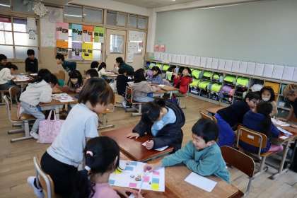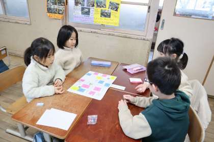 3学期初日だったので、冬休み明けのすごろくトークをしました。冬休みの思い出や3学期のめあてを話しました。