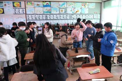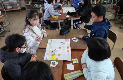 3学期初日は、冬休みの過ごし方についてすごろくトークをしました。