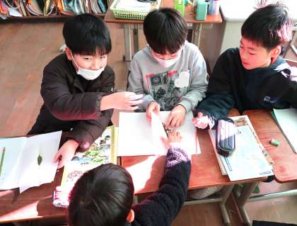 実際にお茶の葉を触ったり、香りを楽しんだりしながら考えを広げる姿が見られました。